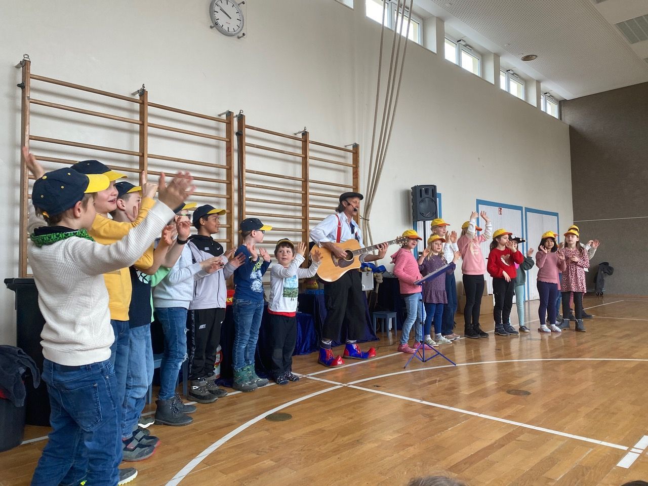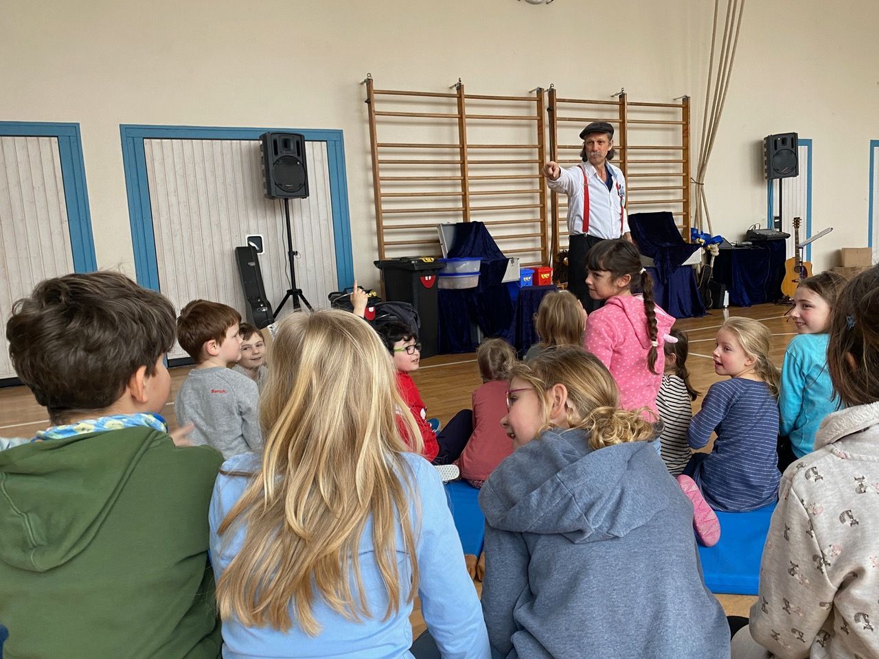 Auch im März gab es eine tolle, gemeinsame Aktion mit Jo Brösele. Mit lustigen Spielen, verblüffenden Zaubertricks und vielen weiteren Mitmachaktionen wurde das Thema "Müll und Müllvermeidung" sehr anschaulich thematisiert. Auch musikalisch konnten wir uns mit viel Spaß und Körpereinsatz einbringen.