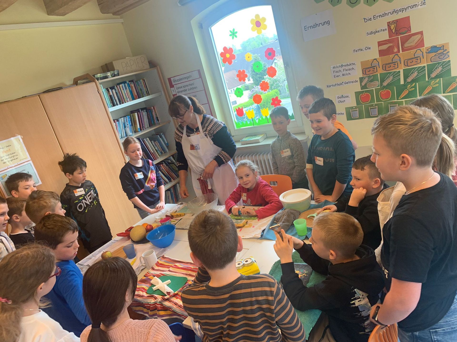 Die Klassen 3 und 4 in Äpfingen machen einen Ausflug in die Mosterei.