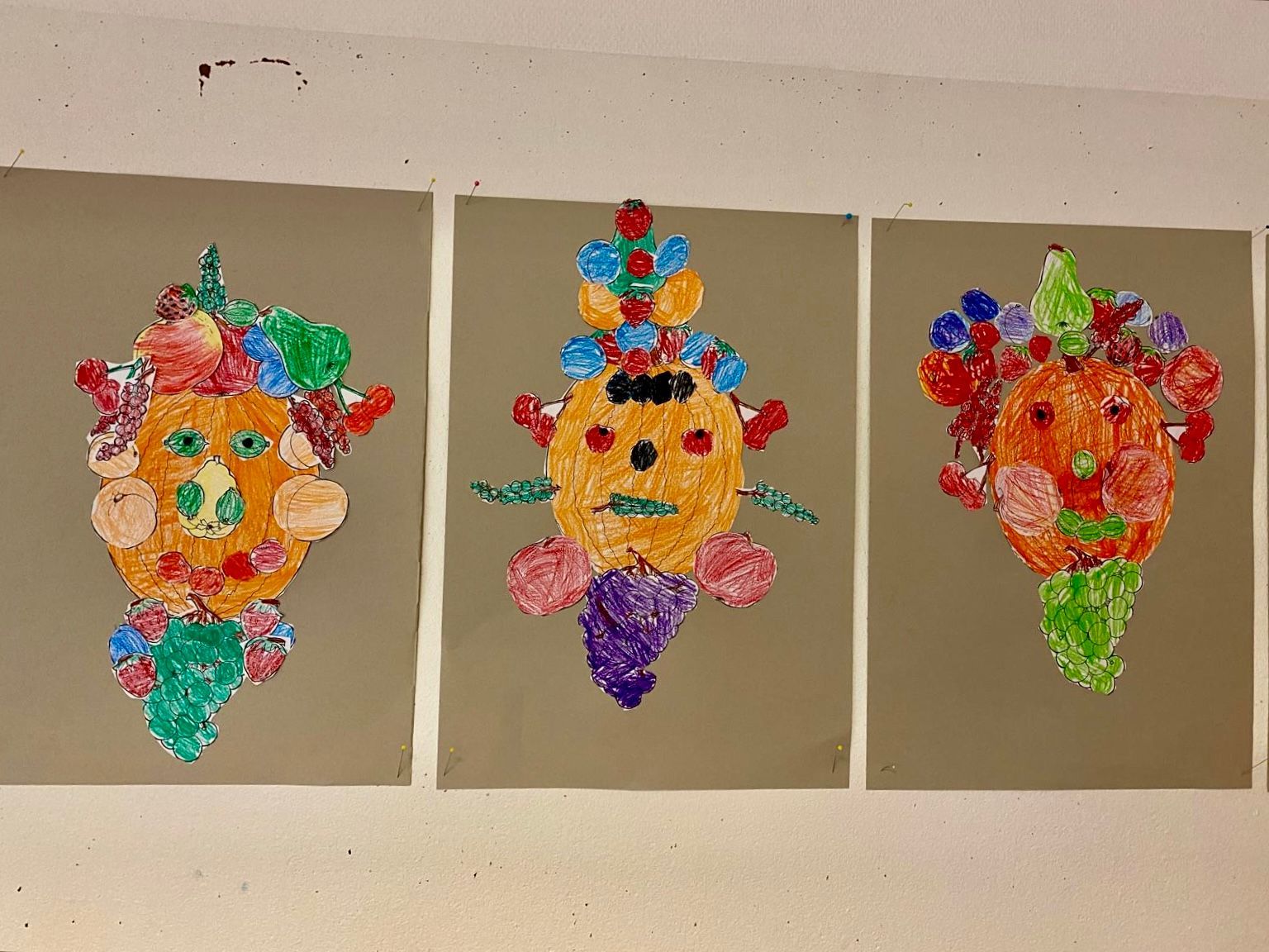 Wir gestalten mit Obst und Gemüse lustige Köpfe.